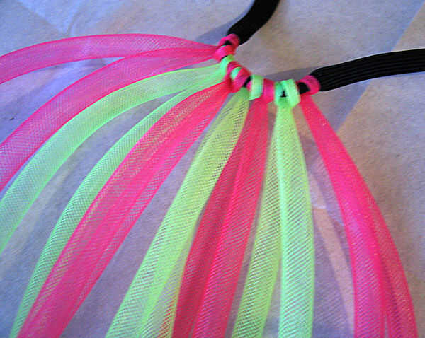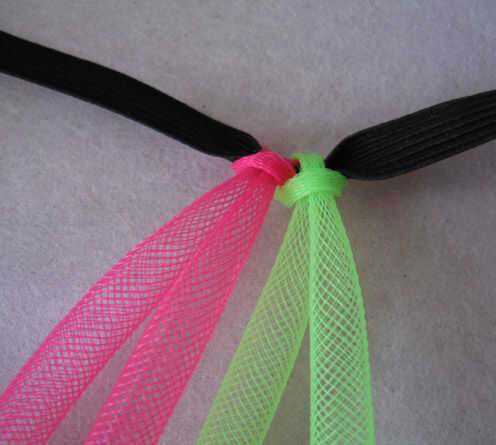 Doblar cada pieza de crin por la mitad y lazo elástico, tirando de los extremos por el lazo y aprieta. Para evitar el estiramiento de la crin, tire firmemente sólo cerca del elástico, en lugar de los extremos. Si tira bien este nudo lo suficientemente no debería ir en cualquier lugar. :)
