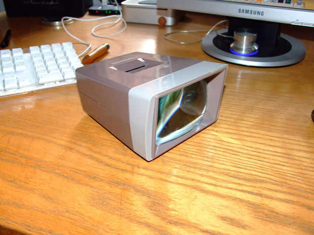 El original visor de diapositiva utilizado es algo raro Photax Solar 3. Esto fue elegido porque se podía comprar a un amigo para dos pintas :D Antes de vino de una tienda de cámaras de segunda mano que me han dicho.