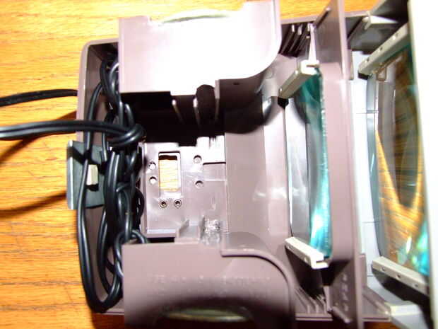 La primera parte que lo hice fue ensanchar la ranura para soporte de diapositivas. Esto implicó casi cortando el plástico en varias ocasiones ya que no es muy grueso. La ranura en la mía se va estrechando hacia la parte inferior también, así que ten cuidado para ir a través del plástico accidentalmente aquí especialmente.