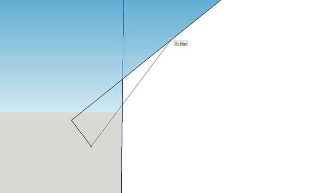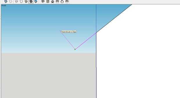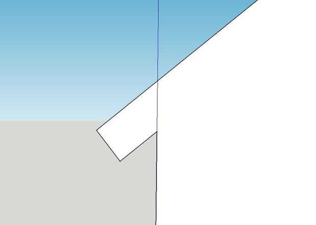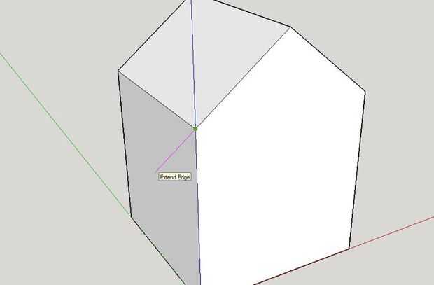A continuación, haremos una línea perpendicular a nuestro borde extendido para dar el techo algunos grueso. Recuerde, puede ser difícil para Sketchup saber qué puntos redondeo le interesa por lo que tenga cambiar la cámara como lo hice en la foto número tres. Yo incluso zoom un poco. También se puede ver que en la foto número tres, comencé una línea, que se cernía sobre las partes de la línea quiere hacer mi nuevo uno perpendicular a y luego comenzó a hacer una línea, mientras que era rosa.