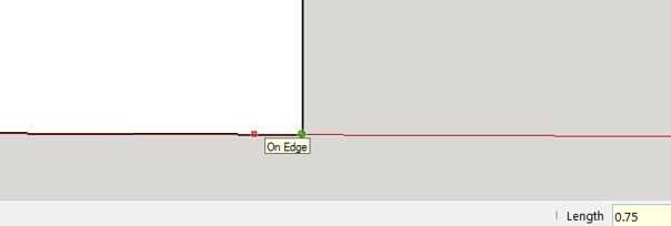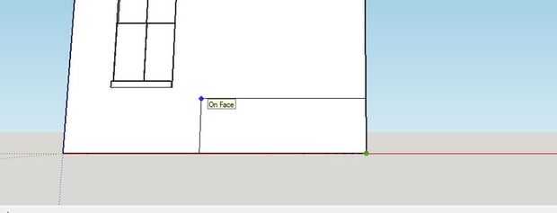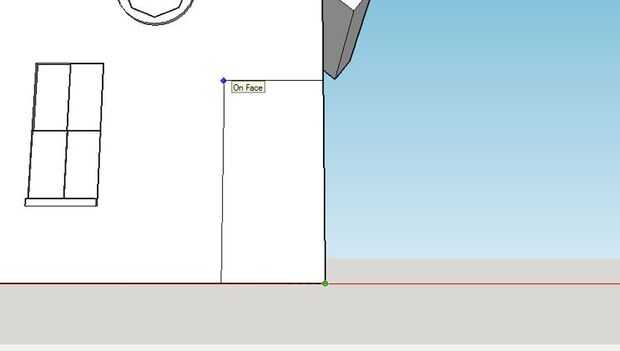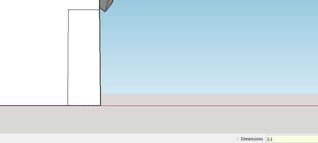 Para hacer la puerta, usamos la herramienta Rectángulo y la herramienta de línea. Empezar haciendo una línea en el eje rojo en la parte inferior de la casa de 0,75 mm de longitud. Se trata de un punto para poder empezar a hacer la puerta. (Cuadro 1)