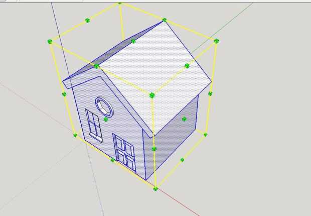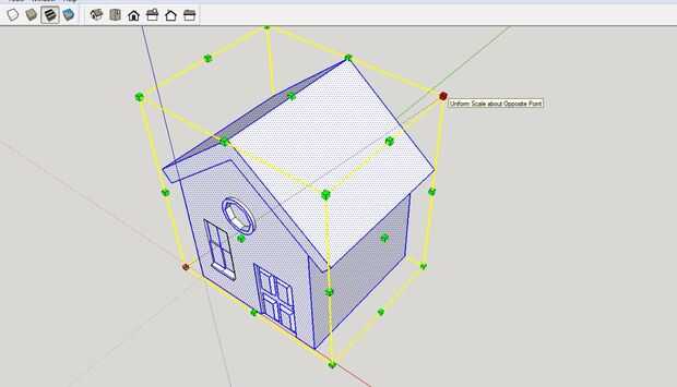 Haga triple clic en la casa y pulse "S" para la escala. También puede hacer clic en el cuadrado con una flecha diagonal para la escala. Ahora debe en el cuadro 2. Esta herramienta es muy fresca porque puede ampliar la casa en cualquier dirección que desee. Jugar con él en su tiempo libre. Por ahora, haga clic en el punto justo detrás superior como tengo y empezar a arrastrar lejos de la casa. (Imagen 3) Ahora escriba en 100. Esto es multiplicador que queremos a la escala. (o el porcentaje dividido entre 100) Esto significa que multiplicamos el tamaño por 100.