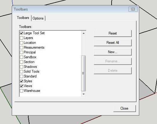Lo primero que debe hacer, haga clic en ver y, a continuación, las barras de herramientas. Desactive todo y luego verificar sistema de herramienta grande, estilos y vistas.
