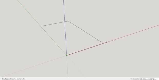 - Escriba 5 para Sketchup avisan de la dimensión que falta. Si usted hizo esto con dos líneas de 5 mm en el eje verde y rojo, usted será capaz de mantener el ratón en una posición donde sketchup rondas a cada una de las líneas y hacer que el cuadrado de 5 por 5.