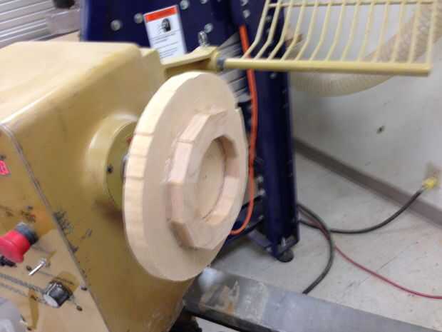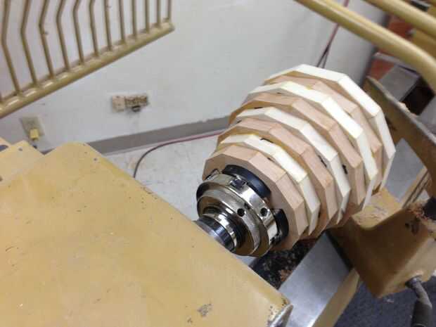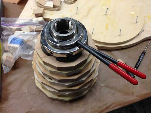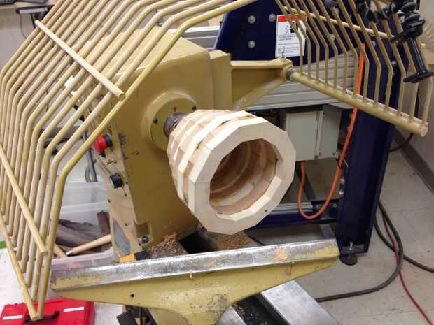 Utilizar el pegamento y pega los anillos entre sí, uno tras otro. También puede utilizar la acción de la cola del torno para la presión de sujeción. como le pegan anillos, fáciles de quitar el bulto del material desde el interior. Puede hacerlo más adelante, si usted tiene el derecho de ahuecamiento herramientas.