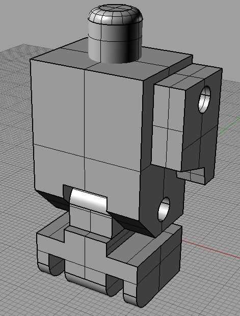 El brazo se crea de la misma manera como el cuerpo y la cintura. El contorno del brazo es dibujado y extrusión. Se realiza un orificio para conectar el brazo al cuerpo. El espacio de conexión entre el brazo superior e inferior se corta así.