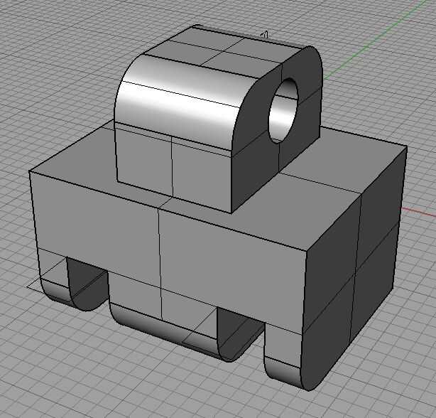 El bloque rectangular se restan para crear los espacios para el espacio de conexión. Luego se saca el círculo pequeño en el centro para formar un cilindro. El cilindro se resta entonces para crear el agujero. La parte superior del bloque rectangular es filete para crear la forma de la curva.