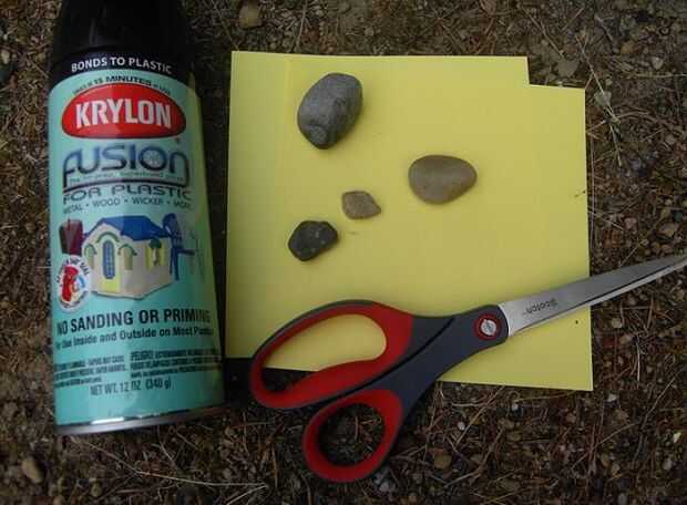 Se necesita: Pintura en aerosol (me gusta mejor negro) Dos hojas de papel Tijeras Rocas