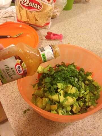 1. vierte el aderezo italiano en el recipiente con todos los otros ingredientes y mezclar todo.