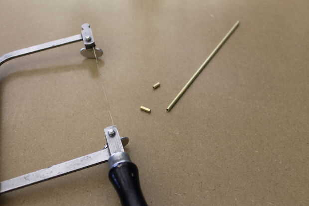 Puedes ver los corté los tubos son ligeramente más largos que el fenólico es gruesa. Esta longitud extra se martilló en la brida de la anilla en los siguientes pasos.