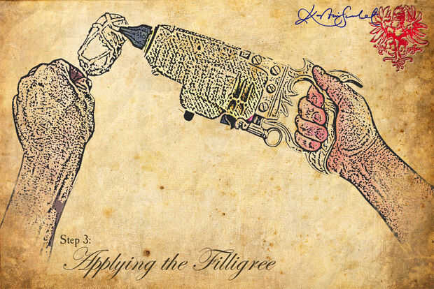 La noche antes de la aplicación de la filigrana, cuando todo estaba lista y no tenía todavía ninguna noción en cuanto a cómo este paso iba a ser logrado, cuando por casualidad llegó a mí en un flash de inspiración.