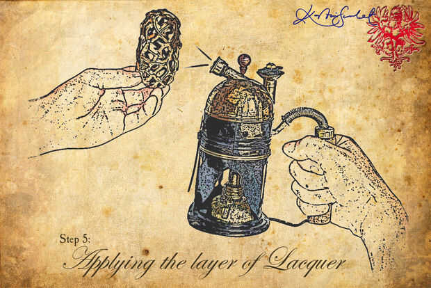 Mientras esperaba para que la primera capa se seque, Collinworth me aconsejó que el partido estaba nervioso que no usábamos el oro puro. Tras un breve debate he podido calmar sus temores mediante el empleo de una capa adicional de la laca brillante de oro. Personalmente creo que un acabado metálico spray proporciona un resultado final más que aceptable.