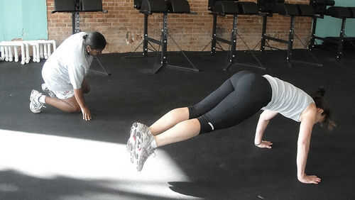 Empuje hacia arriba con una pierna subida: Este ejercicio trabaja en brazos como muslos y nalgas.