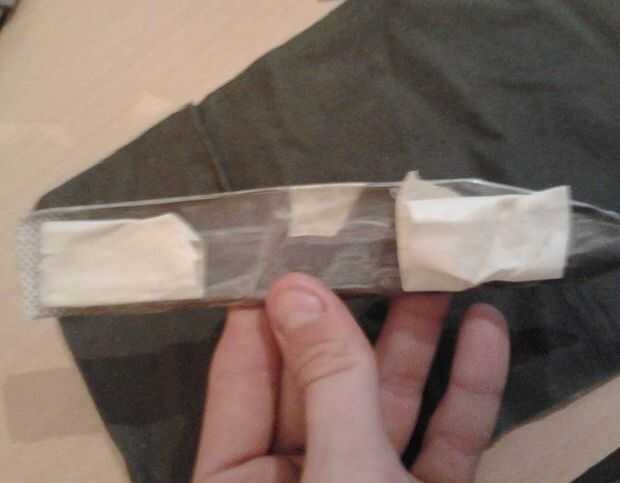1 poner una funda de papel en una tela que use para este proyecto y luego doblar a la tela, como demostró en la tercera y cuarta imagen.