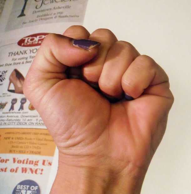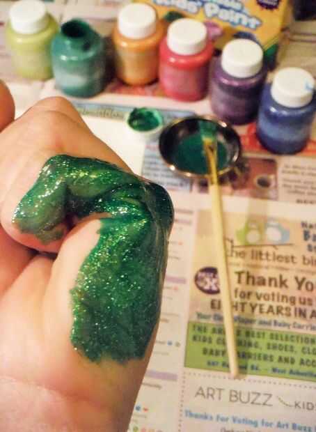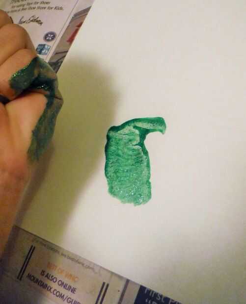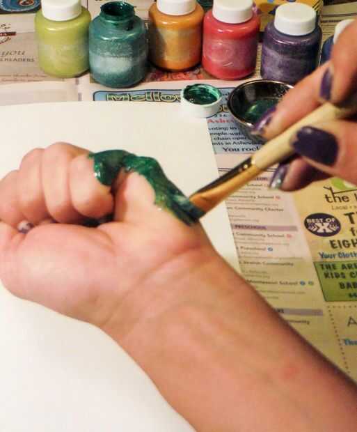 En primer lugar, usted querrá comenzar mi formando un puño con su mano izquierda. Luego, utilizando el pincel, agregar pintura en la parte exterior del lado meñique de la mano. Asegúrese de cubrir con la pintura de la punta del dedo meñique hasta la base de la muñeca.