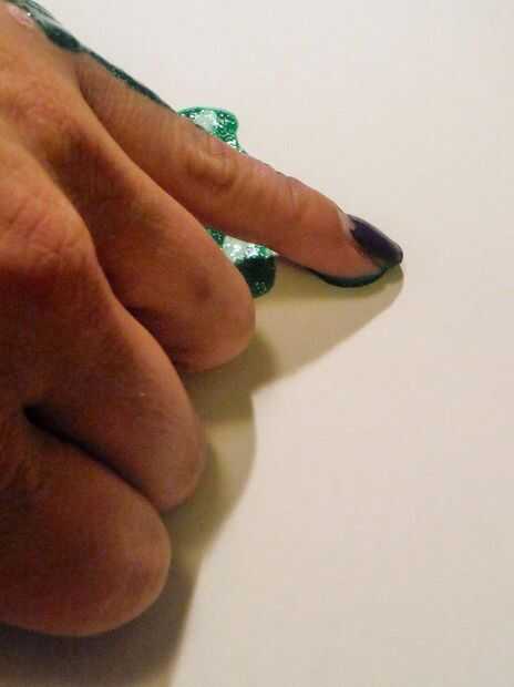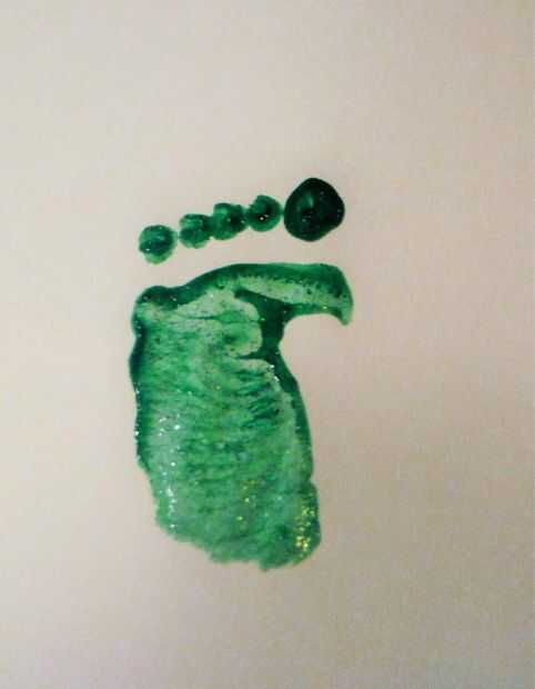 A continuación, tomar el dedo meñique y sumergir la punta del mismo en la pintura (o se puede pintar en con el cepillo). Añadir 5 pequeños dedos de los pies justo por encima de los pies. Asegúrese de hacer progresivamente los dedos del pie más pequeños mientras se trabaja desde el dedo gordo hasta el más guarro.
