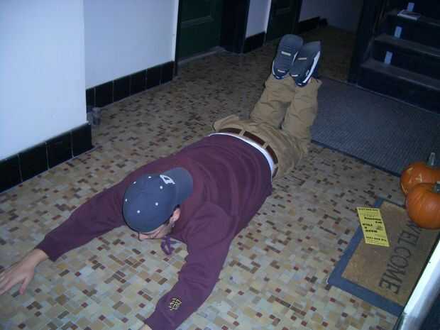 Hay dos maneras de ir aquí, que se puede extienden los brazos delante de su cuerpo o lo más seguro es poner las manos en el costado de su cuerpo como si se va a hacer un pushup.