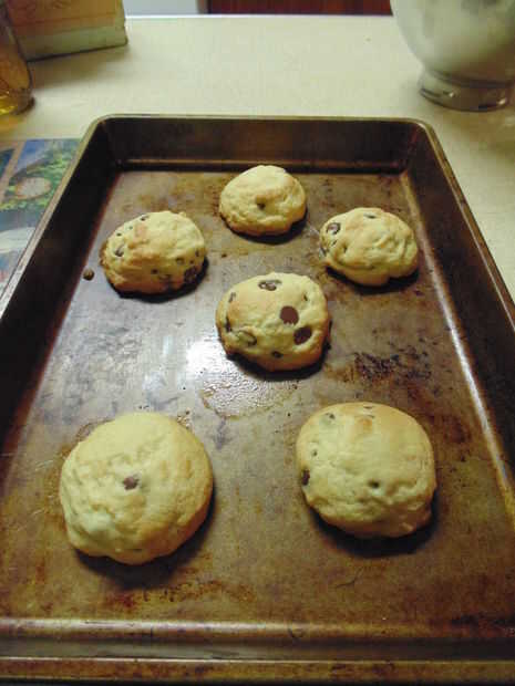Cuando el temporizador se apaga, sacar las galletas del horno. Si te gusta las cookies de tu suave y masticable, los saca cuando parecen bastante no se hacen. Que se ven pálida y un poco más mojado todavía.