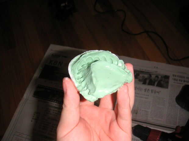 Ahora tenemos un negativo de los dientes. Quite cualquier exceso alginato colgando fuera de la bandeja.