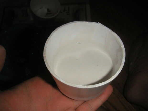 Después de haber mezclado el yeso, verter en la taza con el molde de alginato. Comenzar a tocar los lados de la Copa con molde de alginato después de verter el yeso. Esto evitará que las burbujas formando en el molde. Pulse hasta que usted cree que todas las burbujas están hacia fuera. Mi primero repartió unas grandes burbujas y luego dejar de subir así que dejé allí. El segundo tenía muchas burbujas pequeñas. Después de los pocos grifos la cantidad de burbujas parece siguen siendo los mismos, por lo que dejé allí.