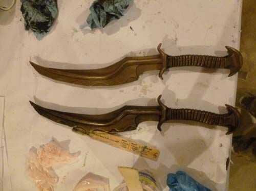 Para el molde frío, polvo se vierte en el molde y luego exceso vertido hacia fuera. Retirar exceso de polvo es crucial. Tuve un poco de polvo, atrapada en la parte de la Cruz guardia y hoja la punta, que significaba que el reparto estaba ligeramente deformado. En polvo el molde y añade un poco de polvo a 4 onzas de parte B antes de mezclar parte A y parte B. El relleno espese la resina, que reduce fugas completamente. No creo que en polvo de la resina hace una diferencia en cuanto a acabado, pero era agradable detener fugas. Tuve un par de remolinos. No sé si la resina elimina el polvo durante la fundición o el polvo no se adhiere en un par de puntos.
