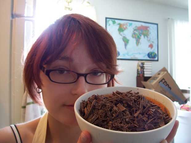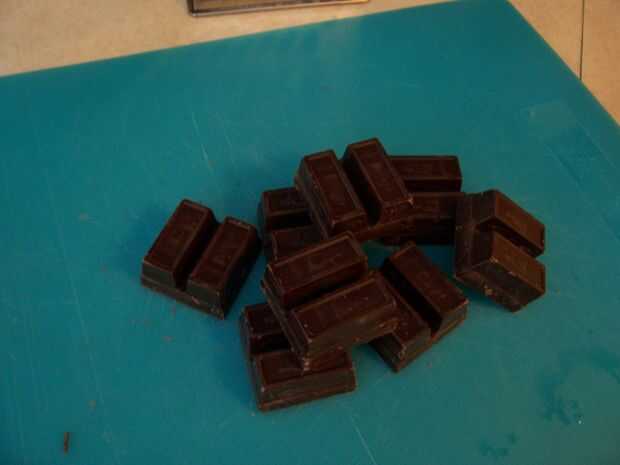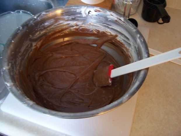 Por último, derretir tus 4 onzas de Chocolate de la hornada de agridulce con 1 y 1/2 cucharadas de agua (tenga cuidado de no calentar demasiado alto!) y combinarlo con los 2/3 de italiano crema Frosting que queda.