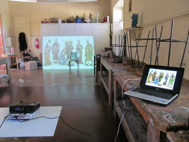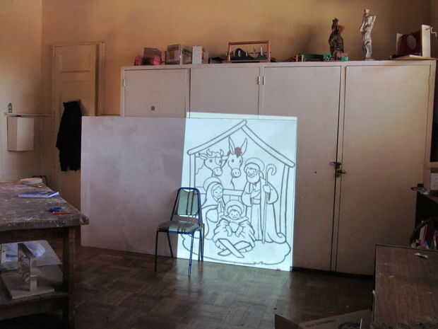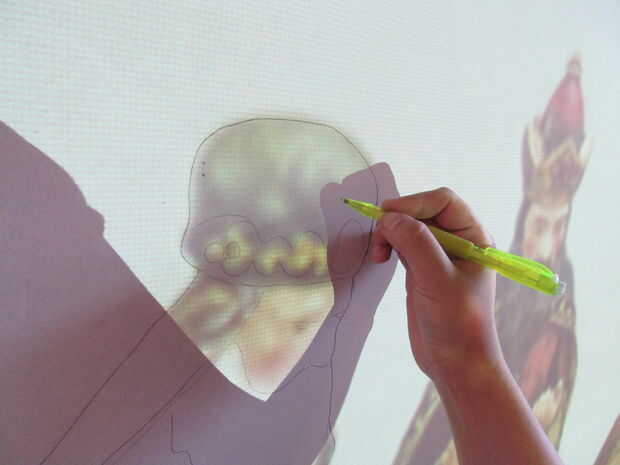 Use su computadora y el proyector para proyectar las imágenes en los tablones de mdf, si se aplica la pintura blanca antes, será más fácil dibujar el contorno de las imágenes.