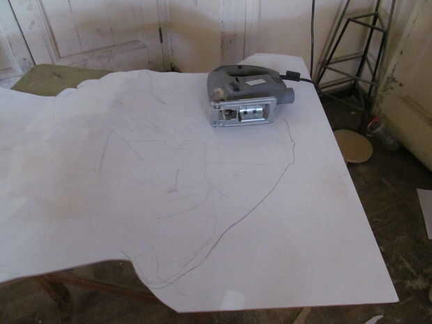 Luego, cortar las formas con la sierra caladora, intercambiar las hojas para curvas y líneas rectas.
