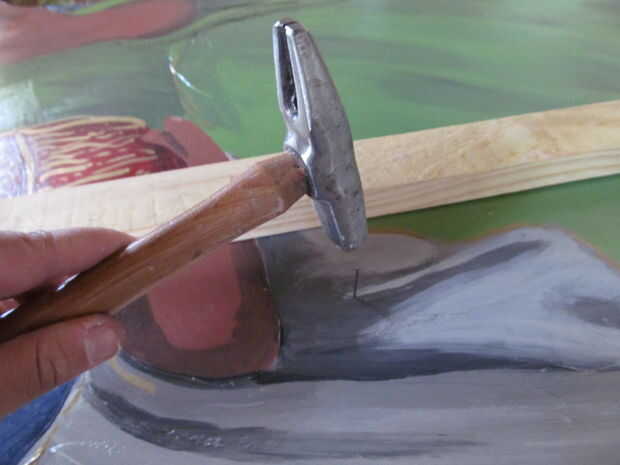 Espere a que el pegamento se seque, voltear la figura y del clavo a través de.
