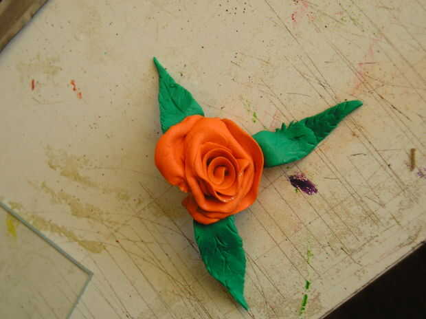 Mismo como con los pedales, las hojas se forman sólo con el dedo y el pulgar, luego usé un par de tijeras para cortar a la forma y serrado en los bordes.