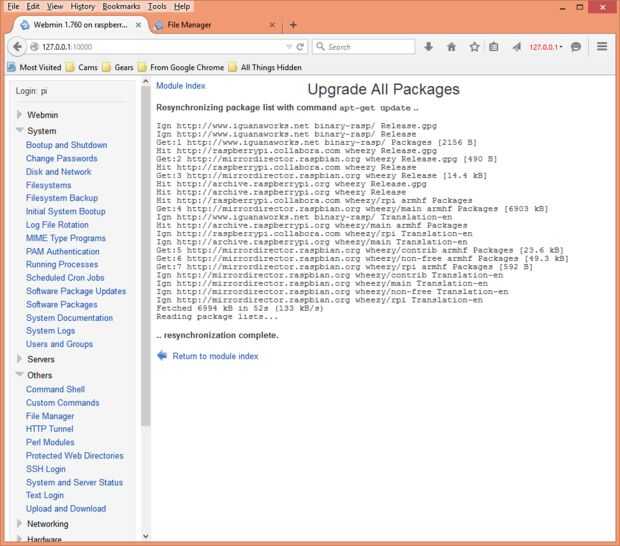 En el menú de Webmin, vaya a sistema, paquetes de Software.