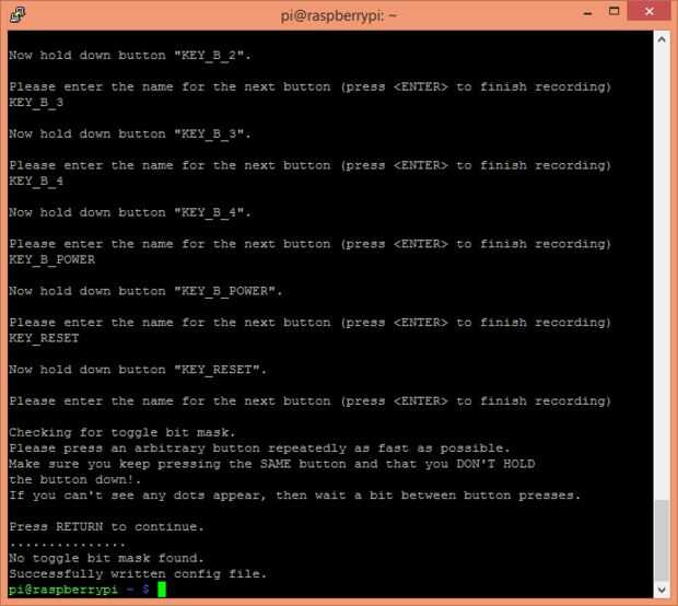 Cuando el programa ha visto suficiente pulsar un botón aleatorio, anunciará "archivo de configuración con éxito escrito."
