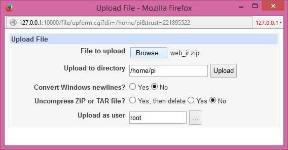 Aquí está uno de Webmin y del administrador de archivos de funciones muy útiles. Carga de archivos.