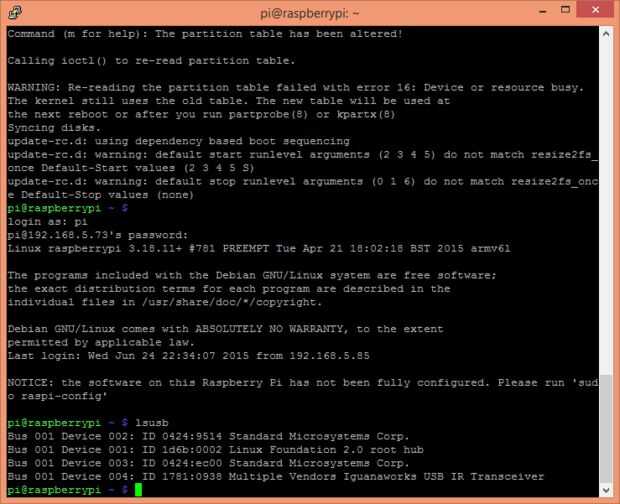 Esto lista de los dispositivos USB conectados. El IguanaWorks (adaptador USB o tu) debe estar en la lista. Esto debe ser cierto sin importar si aparece el dispositivo de lirc0 o no. Se trata de una detección de nivel inferior que pasa si hay un driver o no. Si el adaptador no se muestra, tiene problemas de hardware.