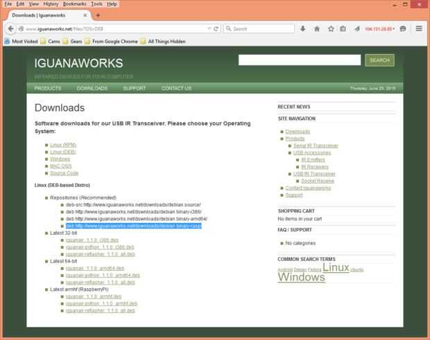 Cada dispositivo USB necesita un driver para instalarse cuando el dispositivo está conectado. Como se dijo antes, estoy usando el dispositivo USB IguanaWorks. El siguiente enlace tiene varias opciones para instalar al controlador.