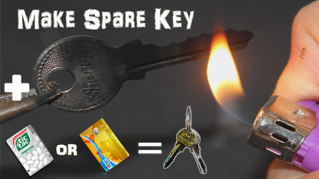 Hacer una llave en minutos usando caducado débito o crédito tarjeta bancaria o cualquier tarjeta de tipo similar o un envase de plástico vacío Tic tac menta podemos hacer la llave de repuesto de emergencia para la cerradura, la llave resultante puede ser utilizada hasta 10 veces porque no metal se dobla así que hacerlo en menos de 4 minutos y mantener en su cartera y uso i un olvido o una situación de emergencia. Es el más útil y la vida más fácil hackear usando botellas de plástico o una tarjeta.