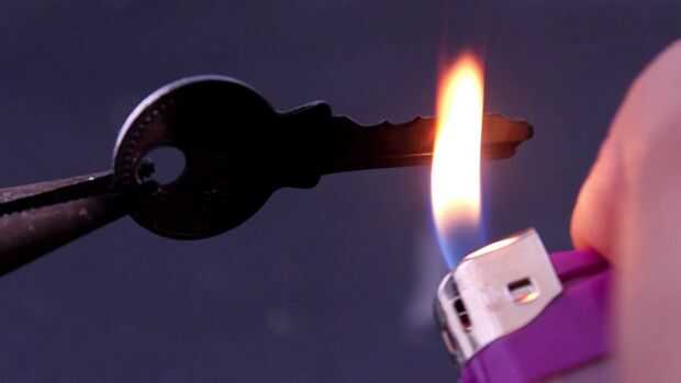 uso ligero y llama un lado de la tecla de humo se acumula en la superficie de la llave ahora Coloque la llave a un lado y deje que se enfríe