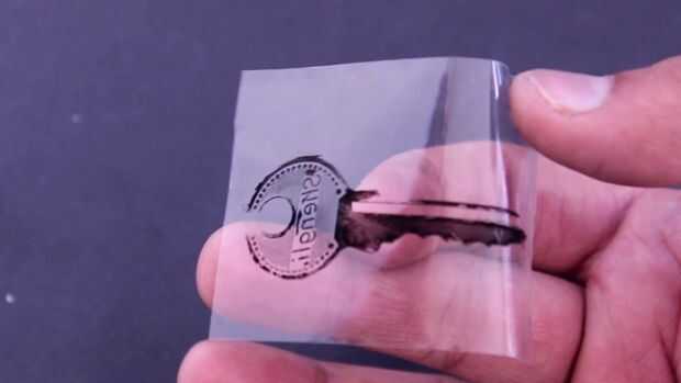 Usando el palo de cinta transparente en el lado humeante de la llave y la impresión de la transferencia clave a la superficie de goma de la que significa que las partículas del humo se pega a la cinta y le da la clara impresión de la clave
