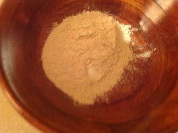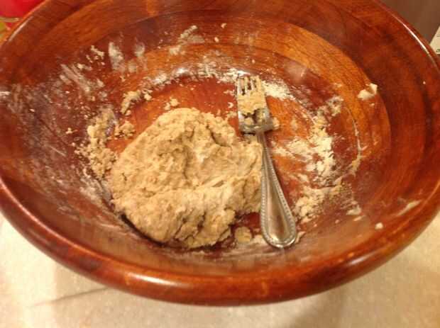 Tomar una ensaladera vacía y poner la harina 1 taza dentro. (Nota: en las fotos he utilizado una harina de trigo asi el color será apagado. No te preocupes si tu masa es el color incorrecto;). Añadir la 1/2 cucharadita de sal en la harina. Añadir toda la grasa en la mezcla y utilizar una batidora de repostería para cortar la manteca en la mezcla de harina hasta que la manteca está todo mezclado en pequeños pedacitos. Rocía el agua en la parte superior y mezclar con un tenedor hasta que forme una bola de masa.