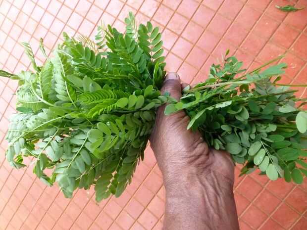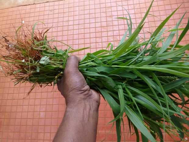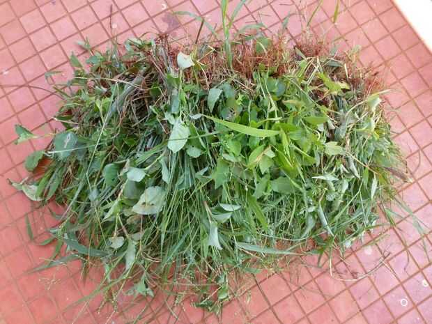 Yo he experimentado con todo tipo de malas hierbas del jardín de la casa y alrededores. Incluyen plantas de malezas, malezas enredaderas, hojas de árboles, hierba y cualquier cosa cerca. Debido a las lluvias la tierra era suave y podía sacar de la mayoría de las malas hierbas con raíces. Cerca de 4 kilogramos de estas malas hierbas recién recolectadas dará 2,5 kilogramos de piensos después de podar las raíces y quitando las partes leñosas. De lo contrario, sólo puede recoger los recortes de la hierba sin las raíces y usarlos como son. También pueden reunir el requisito de tres a cuatro días de anticipación y mantenerlos por separado.