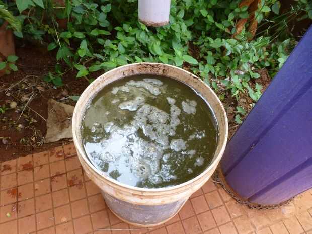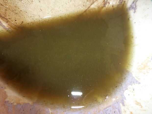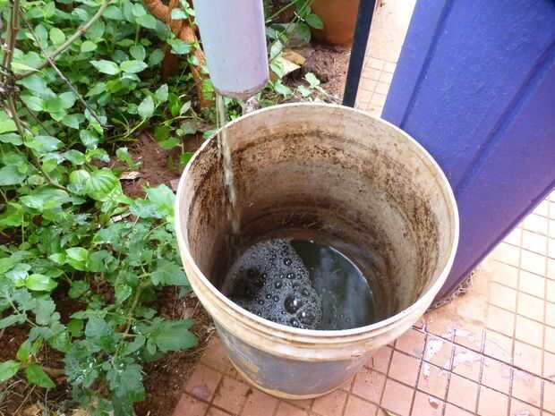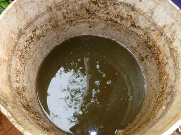 Cuando el digestor del biogás se alimenta de las malas hierbas pulverizadas, la misma cantidad de lodos digeridos se drena a través de la tubería de salida. Aquí también, he utilizado una cubeta de 20 litros para recoger la mezcla, que puede ser utilizada como abono en el jardín.