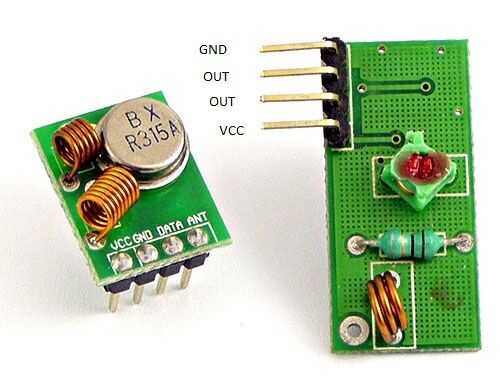 Lo bueno es que hay un montón de información en la web acerca de cómo configurar radios RF. Primero nos determinar cual es nuestro transmisor y cual es nuestro receptor. Mira muy de cerca las etiquetas pin en ambos tableros que tienes: