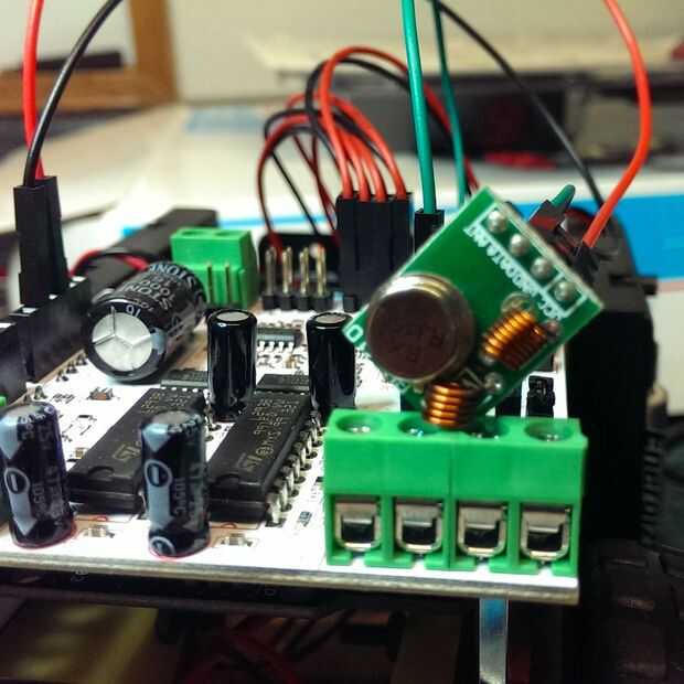 Por el momento solo puse el transmisor en la parte superior de la tarjeta de conductor para la prueba. Una vez que queremos ejecutar el robot que se coloque el transmisor apartados de las ruedas.