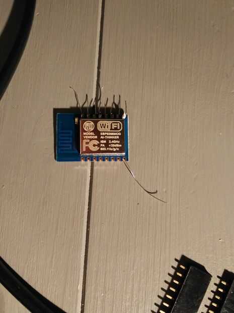 Siguiente que desea aplicar un poco de soldadura a la plancha (no para tanto!) y apenas toque el conector oro ESP. Si puede ver la soldadura cubierta op el agujero (en el otro lado también) es bueno.