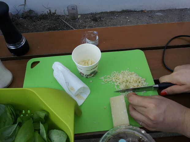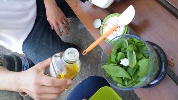 1. recoger las hojas de albahaca, lavarlos y ponerlos en la batidora.