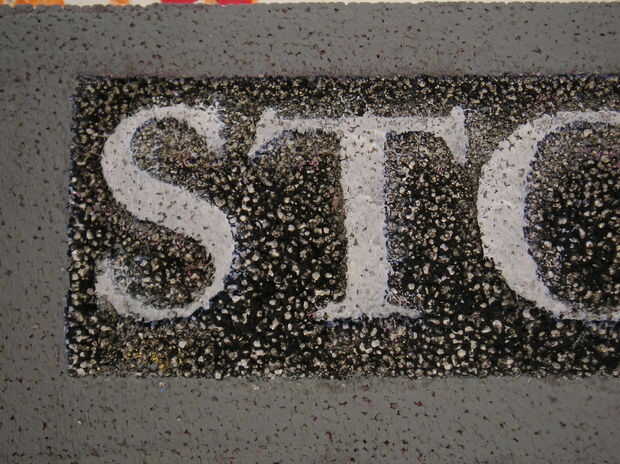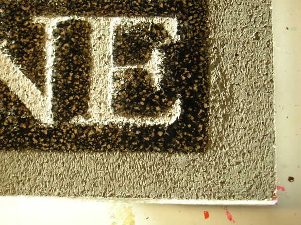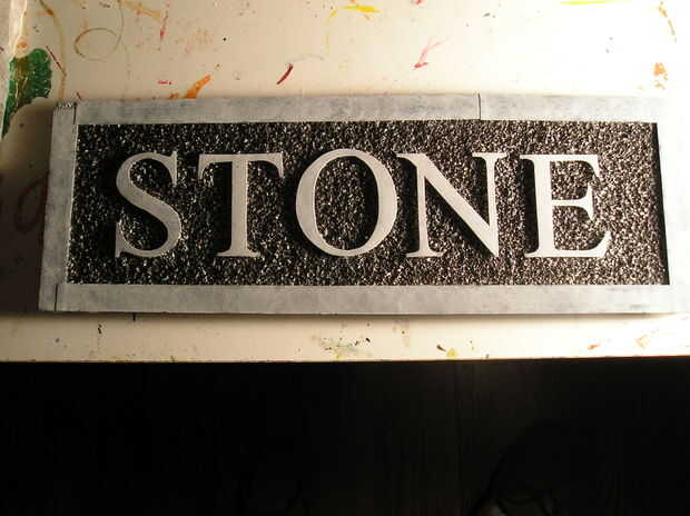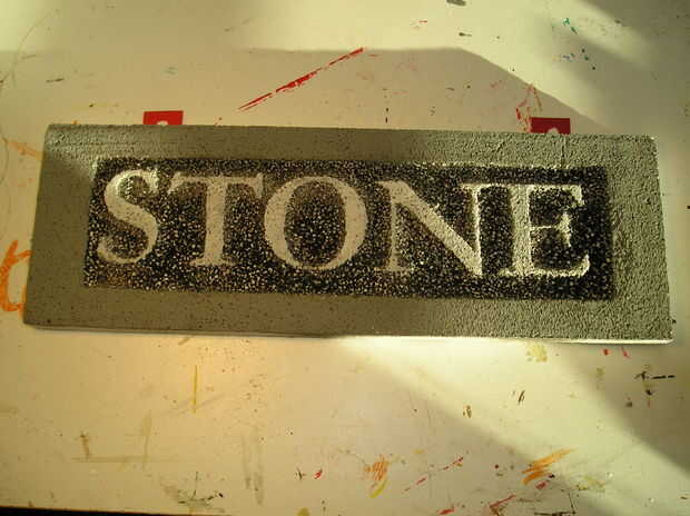Después de rociar tantas veces como creas necesario, signo está listo para terminar. Las opciones incluyen dejando el papel resiste a y pintura tal vez o quitar el papel para un look más "cincelado". Elige tu opción. Ver muestras para obtener resultados diferentes. Las posibilidades para hacer signos es interminable: pensar en lápidas, casa número/placas, marcadores de jardín, señales de dirección y así sucesivamente.