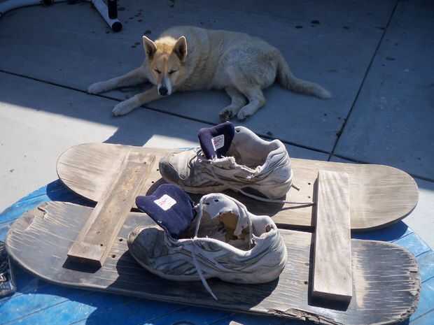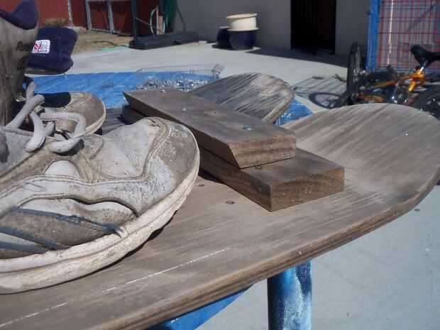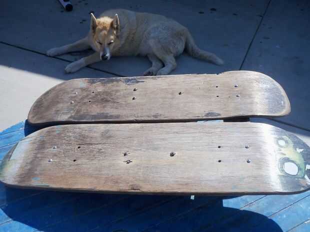 Función de seguridad #1. Unir los esquís. Esto evitará que la esquiadora accidentalmente "haciendo las fracturas". Utilice tornillos para fijar dos piezas de madera (12 pulgadas de largo y 2,5 pulgadas de ancho) y cierre los cielos juntos. Utilice los orificios donde las ruedas fueron montadas originalmente para conectar estos aparatos. Tornillo de la parte inferior de la cubierta en las llaves.