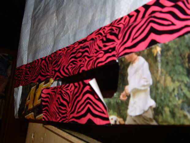 La manija de la cinta primero. doblar la cinta hacia el interior.  Para ello todo el agujero que usted cortó y en ambos lados.