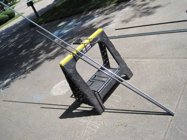 Por último, corte un pedazo largo de un pie del conducto grande "manga" para cada articulación que usted estará haciendo en sus polos. Puesto que sólo se cortaron mis polos en un solo lugar, hice una manga para cada polo.