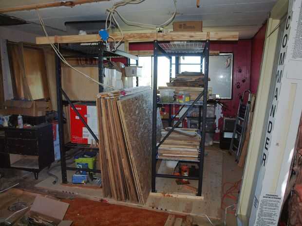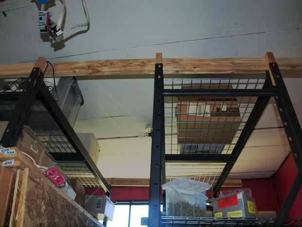 Nos topamos con una molestia con un conjunto de estantes pesados que compramos. Fueron hechos para cosas grandes y cosas pequeñas no. Las unidades son grandes, tienen límites de peso grande (3 toneladas) y son estables. Colocó una capa de madera contrachapada de lengüeta y ranura de 3/4 de pulgada para reforzar el piso y los agujeros de parches. Ponemos los pies en tableros de 2 X 3 para distribuir la carga y lag los atornillados. Nos atan las tapas junto con 2 X 4. En lugar de colocar los estantes espalda con espalda, poner un espacio que podríamos utilizar para el almacenamiento de mercancías de la hoja como madera contrachapada entre ellos. Fue todo genial. Pero tiene un montón de madera pequeña, como listones, de paletas y cortar las losas de los árboles. Sólo podríamos apilarlo todo en un montón en los estantes, pero además de no ser muy estable nunca podremos llegar fácilmente a la madera de diferentes. Así que teníamos que hacer un divisor para espacios más pequeños para los estantes. Y cuando nació este proyecto.